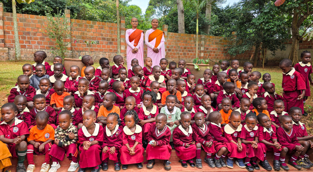 The Uganda Buddhist Centre therefore with support from its partners opened the school to provide early childhood development and education to children from such families and communities. These children are fully sponsored, as parents are prepared to be able to pay a small fee when their children join the Primary Section at the Buddhist Primary School.